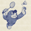배드민턴 셔틀콕을 향해 도약하는 캐릭터의 순간 포착이 작품의 핵심이다. 단색에 가까운 블루 톤과 만화적 드로잉이 어우러져, 스포츠 특유의 속도감과 귀여운 긴장감을 동시에 드러낸다.