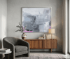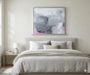50×60cm 캔버스 위에는 먼저 차가운 회색과 흰색이 넓게 번져 있다. 한 번에 칠해진 단일한 면이라기보다, 여러 방향으로 쓸어 올린 붓질과 긁어낸 자국, 반투명하게 겹친 레이어들이 서로의 가장자리를 스치며 하나의 흐릿한 장면을 만든다. 화면은 수평과 수직...see more