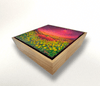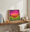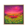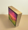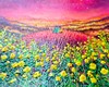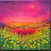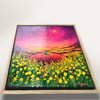 점묘에 가까운 두꺼운 아크릴 터치로 꽃과 불빛이 촘촘히 빛나는 화면을 이루며, 붉은 언덕과 노란 꽃, 분홍빛 하늘이 겹겹이 포근한 저녁의 공기를 만든다. 어둠과 빛이 공존하는 노을빛 도시 풍경 속에서, 나란히 앉은 두 인물은 서로의 어깨에 기대어 하루를 견디게 한 희망의 빛과 내일을 기다리게 하는 휴식을 상징한다.
