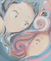 아크릴 특유의 매끈한 발림과 반투명한 레이어를 활용해 파스텔톤의 소용돌이와 소녀의 얼굴을 한 화면에 녹여낸 현대 회화다. 여성적인 섬세함과 만화적 캐릭터성이 결합되어, 부드럽지만 강한 시선의 에너지를 만들어낸다.