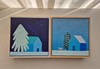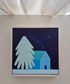 아크릴과 젤스톤으로 표현된 눈 덮인 나무와 집, 그리고 강아지가 한 폭의 겨울 밤 풍경을 이룬 작품이다. 단순화된 형태와 깊은 남색의 밤하늘, 미세하게 반짝이는 질감이 함께 꿈처럼 아련한 기억과 가족·반려동물에 대한 사랑을 상징적으로 드러낸다.