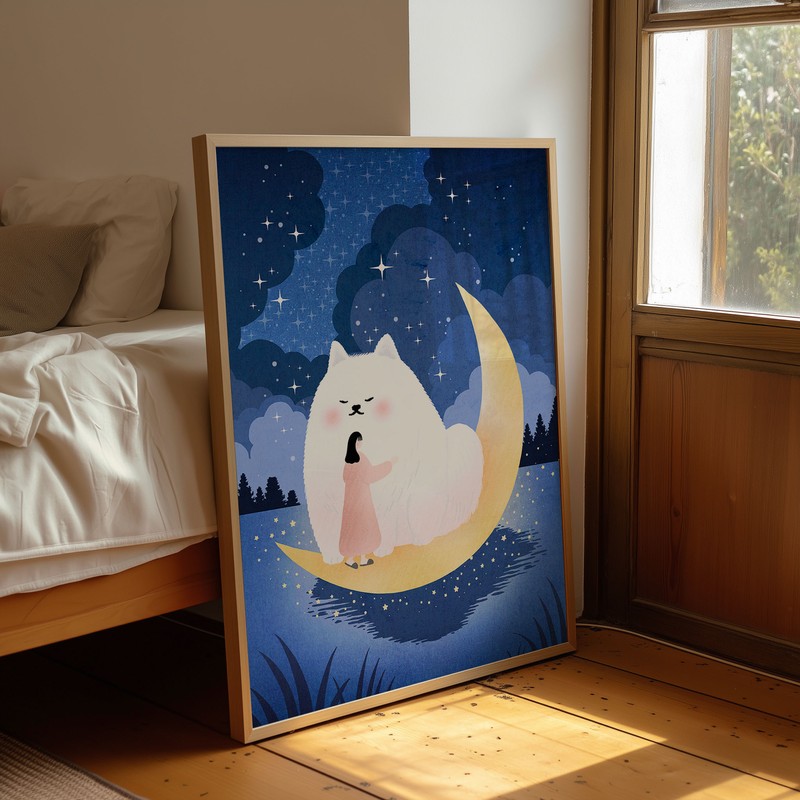 일러스트를 기반으로 한 회화 작업 멈춰 있는 장면, 단순화된 감정 조용히 머무는 그림을 그립니다