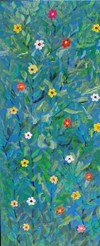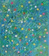 아크릴 특유의 선명한 색감과 평평한 캔버스 질감을 활용해, 작은 꽃들이 풀숲 속에서 반짝이는 순간을 회화적으로 단순화한 작업이다. 구체적 묘사보다는 색과 형태의 반복, 패턴의 밀도로 자연의 충만함을 전달하는 화면 구성이다.