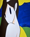 짙은 블루와 선명한 옐로, 부드러운 그린이 큰 색면으로 맞부딪치며 화면을 가득 채웁니다. 그 위에 놓인 인물은 단 몇 개의 선과 색으로만 그려져 있지만, 긴 머리카락과 살짝 돌아본 어깨의 곡선 덕분에 오히려 더 또렷한 존재감을 드러냅니다. 표정이 생략된 얼굴, 깊은 타...see more