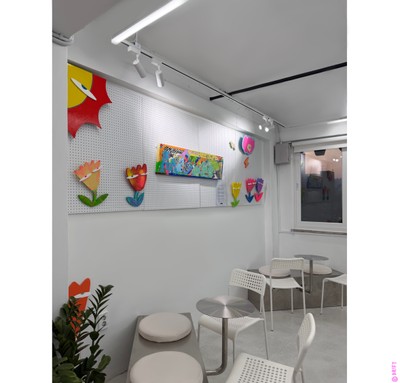 안녕하세요 현재 삼각지 갤러리 카페 클루노브에서 전시중이에요! 😆 제 작품 알록달록하죠?ㅎ 첫 포스팅 올려보아요 감사합니다!