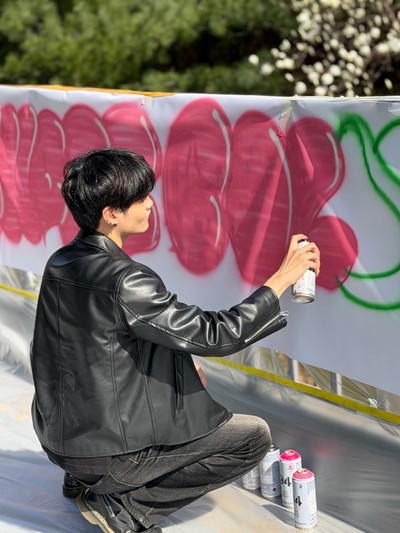 갤러리 아트리에 헤이리 전시 <Where Colors Breathe: 색이 숨쉬는 곳> 오프닝 파티에서 송 카자마 작가와 함께 그래피티 퍼포먼스로 참여했습니다.