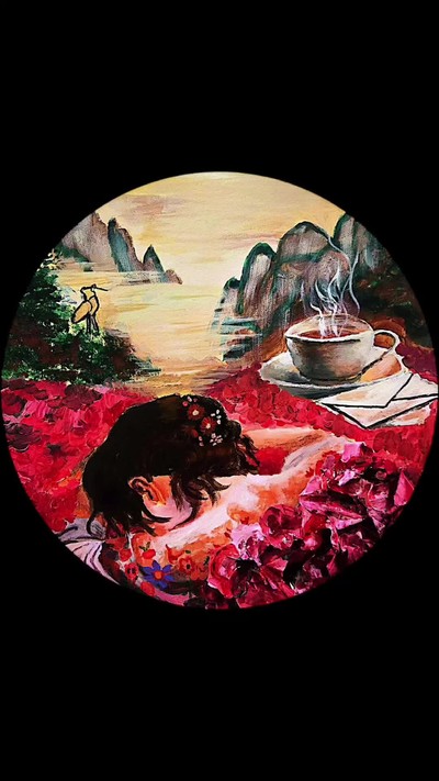 작품"보고싶어"는 이별이나 상실의 사건을 말하지 않는다. 꽃잎에 거의 잠기듯 엎드린 인물과 아직 김이 오르는 찻잔, 열리지 않은 편지는 감정이 끝났다고 말해진 이후에도 쉽게 사라지지 않는 상태를 보여준다. 말하지 못한 마음과 정리되지 않은 감정, 식지 않은 온기가 한 자리에 머물러 있는 시간. 이 그림은 슬픔을 설명하기보다, 감정이 스스로 가라앉기를 기다리는 순간과 그 무게를 조용히 기록한다. This work does not depict an event of separation or loss. A figure lies almost submerged in layers of petals, while a cup that still releases steam and an unopened letter suggest emotions that remain even after something is said to be over. Unspoken feelings, unresolved emotions, and lingering warmth stay in place, suspended in time. Rather than explaining sorrow, the painting quietly records the weight of waiting for emotions to settle on their own. #아크릴화#현대미술#미술작가#art#drawing