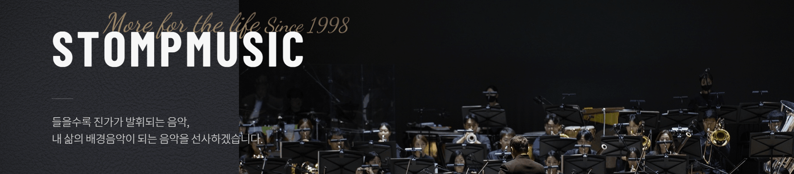 연간 100회의 기획공연과 행사를 진행중인 대한민국 대표 공연/음반 기획사 연주음악 전문 레이블로 출발한 스톰프뮤직은 정통클래식, 재즈, 뉴에이지, 영화음악, 월드뮤직 그리고 아트 전시 연계 음악으로. 마음을 위로하는 음악들로 큰 사랑을 받았고, 또 선보이고 있습니다.